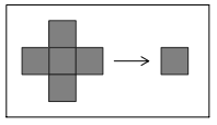 我们在本书中讨论过的元胞自动机都是纯粹的一维的,所以在每一步都只涉及一行单元。 但也可以考虑涉及整个网格单元的二维元胞自动机,每个单元格的颜色根据网格上所有四个方向上的邻居而定,如下图所示。